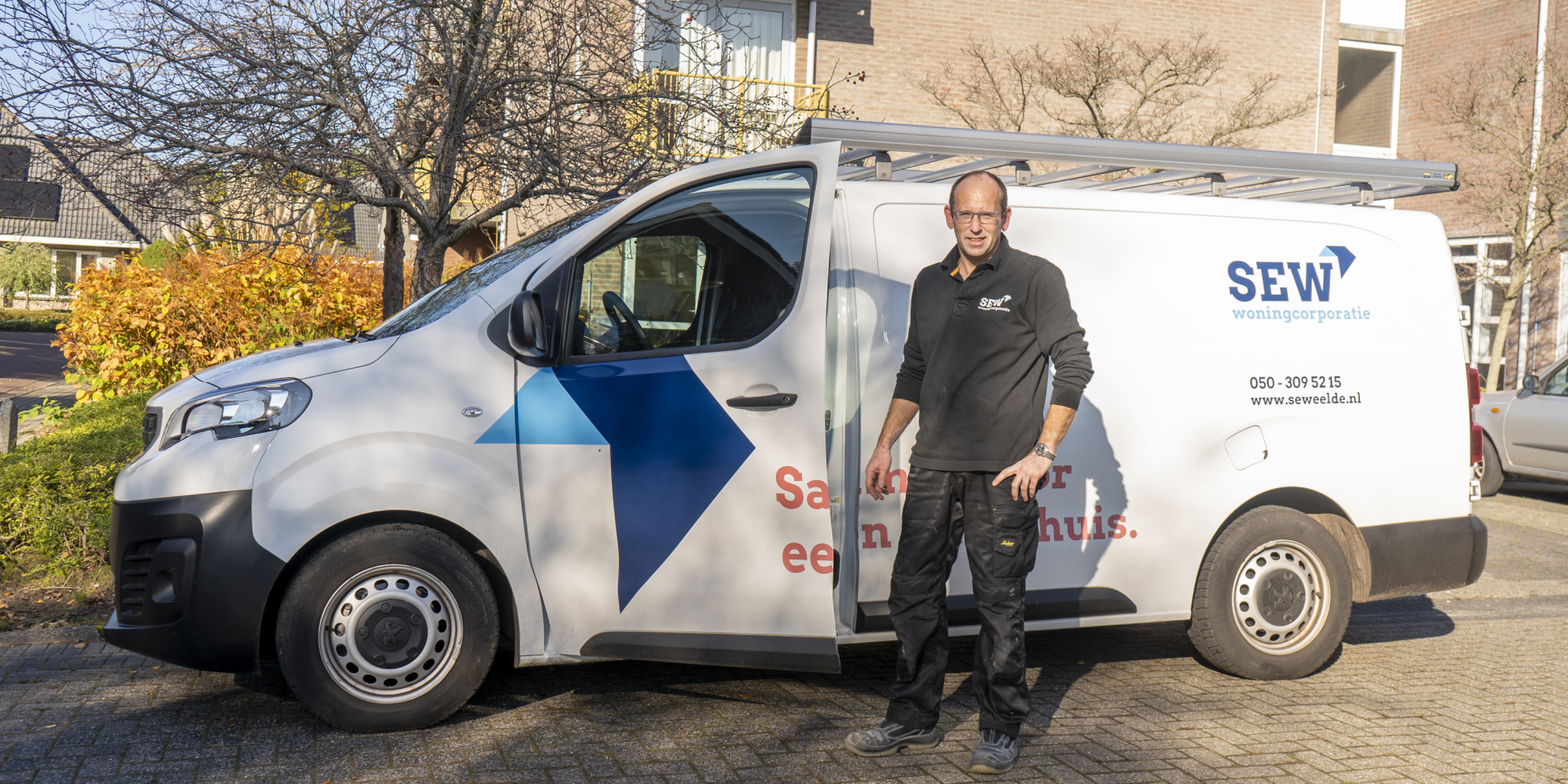 Als allround vakman doet John alles wat nodig is voor wooncomfort in de woningen van SEW. “Een kapot slot repareren, een badkamer renoveren of behang verwijderen omdat er gestuukt moet worden. Of een hele nieuwe keuken installeren. Je kunt het zo gek niet bedenken of ik doe het. Tsja, je bent allround of je bent het niet hè.”